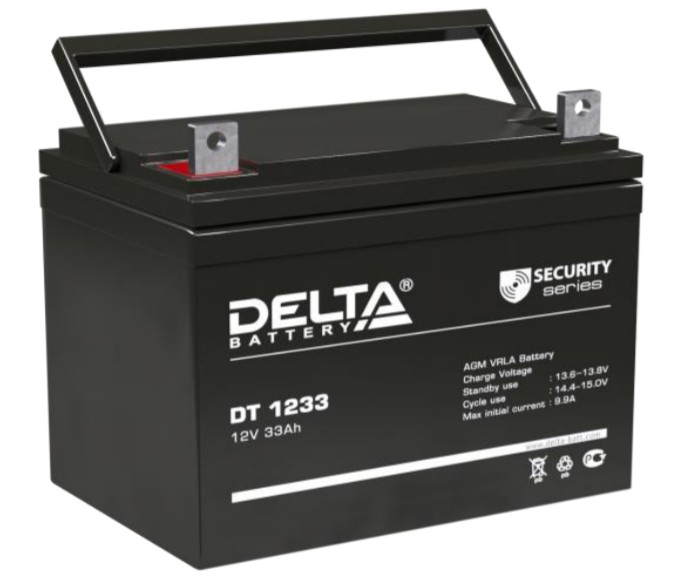 Аккумулятор герметичный свинцово-кислотный необслуживаемый DELTA DT 1233 12В/33Ач, производимый по технологии AGM, предназначен для использования в составе охранно-пожарных и иных систем безопасности.