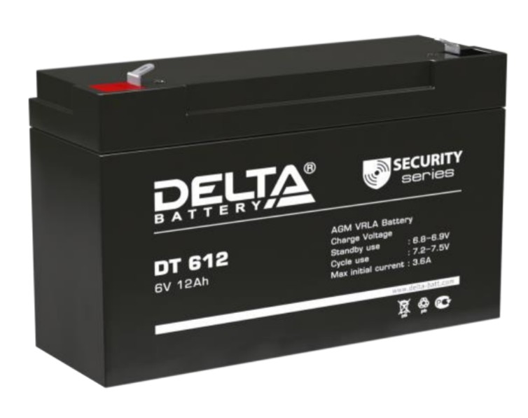 Аккумулятор герметичный свинцово-кислотный необслуживаемый DELTA DT 612 6В/12Ач, производимый по технологии AGM, предназначен для использования в составе охранно-пожарных и иных систем безопасности.
