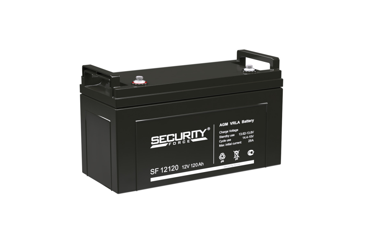 Аккумулятор герметичный свинцово-кислотный необслуживаемый SECURITY FORCE SF 12120 (12V/120Ah), производимый по технологии AGM, разработан специально для использования в составе охранно-пожарных систем безопасности (ОПС).