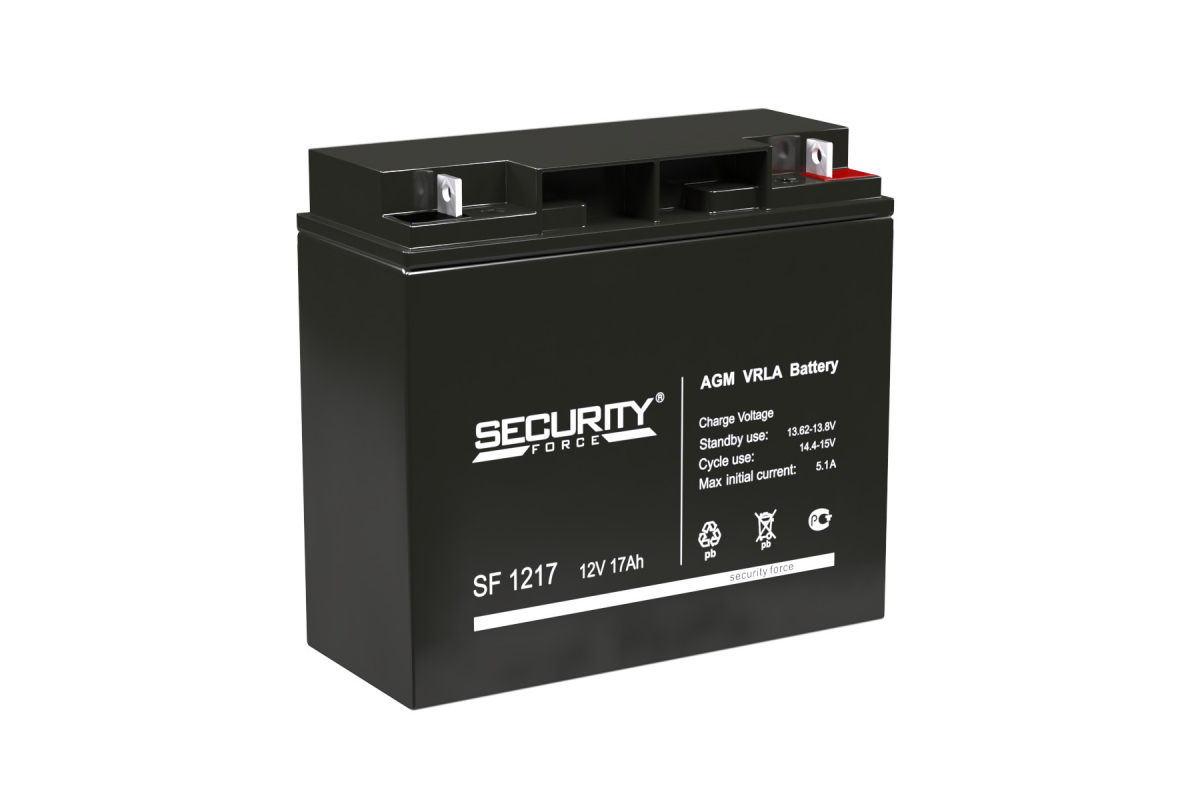 Аккумулятор герметичный свинцово-кислотный необслуживаемый SECURITY FORCE SF 1217(12V/17Ah), производимый по технологии AGM, разработан специально для использования в составе охранно-пожарных систем безопасности (ОПС).