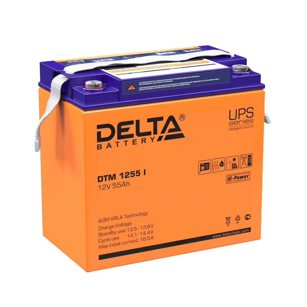 Аккумуляторная батарея Delta DTM 1255I, 12В, 55Ач, срок службы 10-12 лет