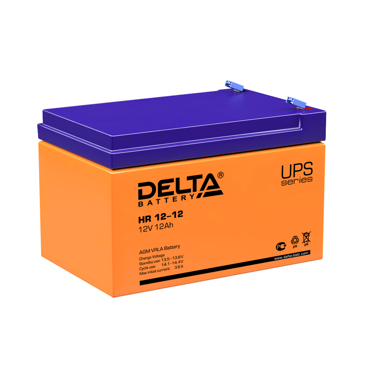 Герметизированный VRLA свинцово-кислотный необслуживаемый AGM аккумулятор DELTA HR 12-12 (12В, 12Ач)
