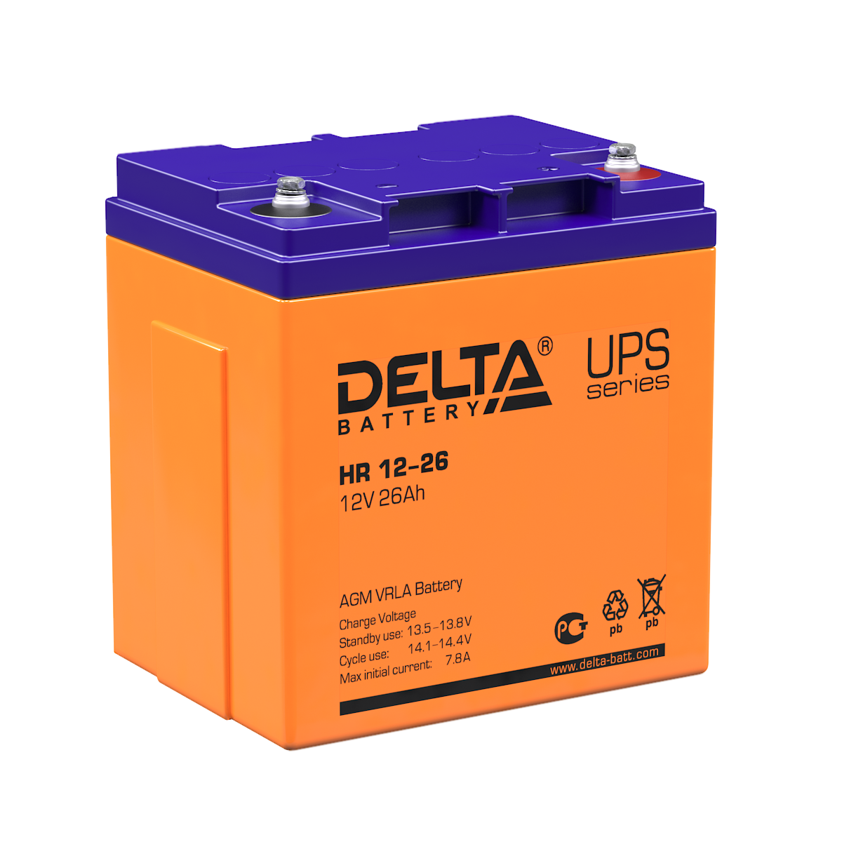 Герметизированный VRLA свинцово-кислотный необслуживаемый AGM аккумулятор DELTA HR 12-26 (12В, 26Ач)