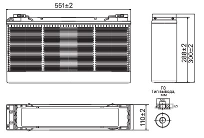Подробнее| Габариты, д*ш*в, мм ±2mm | 551*110*288/300 |