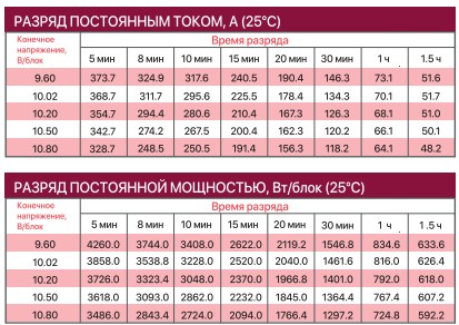 Мощность Вт/блок 15 мин до 1,6 В/эл | 2622 |