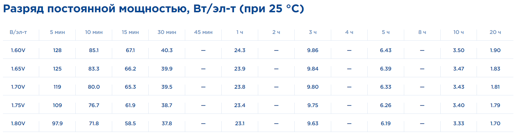 | Внутреннее сопротивление полностью заряженной батареи, мОм | 15 |