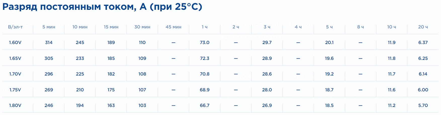 Максимальный ток разряда, А (5 с, 20°С) | 950 |