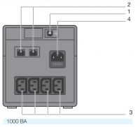 - 2 розетки с защитой только от повышения напряжения, предназначенные для питания менее важных потребителей и потребителей с высоким потреблением электроэнергии (например, лазерные принтеры).